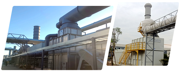 工藝沸石轉(zhuǎn)輪+TO 技術(shù)難點:塑膠加溫后廢氣含高沸點物質(zhì),氣體溫度較高;危廢倉庫廢氣成分復雜,含有鹵素 方案:氣體冷卻后進入四級過濾,過濾去除焦油和顆粒物后進入沸石轉(zhuǎn)輪濃縮后進入TO氧化處理 結(jié)果:排放值12-18mg/Nm3